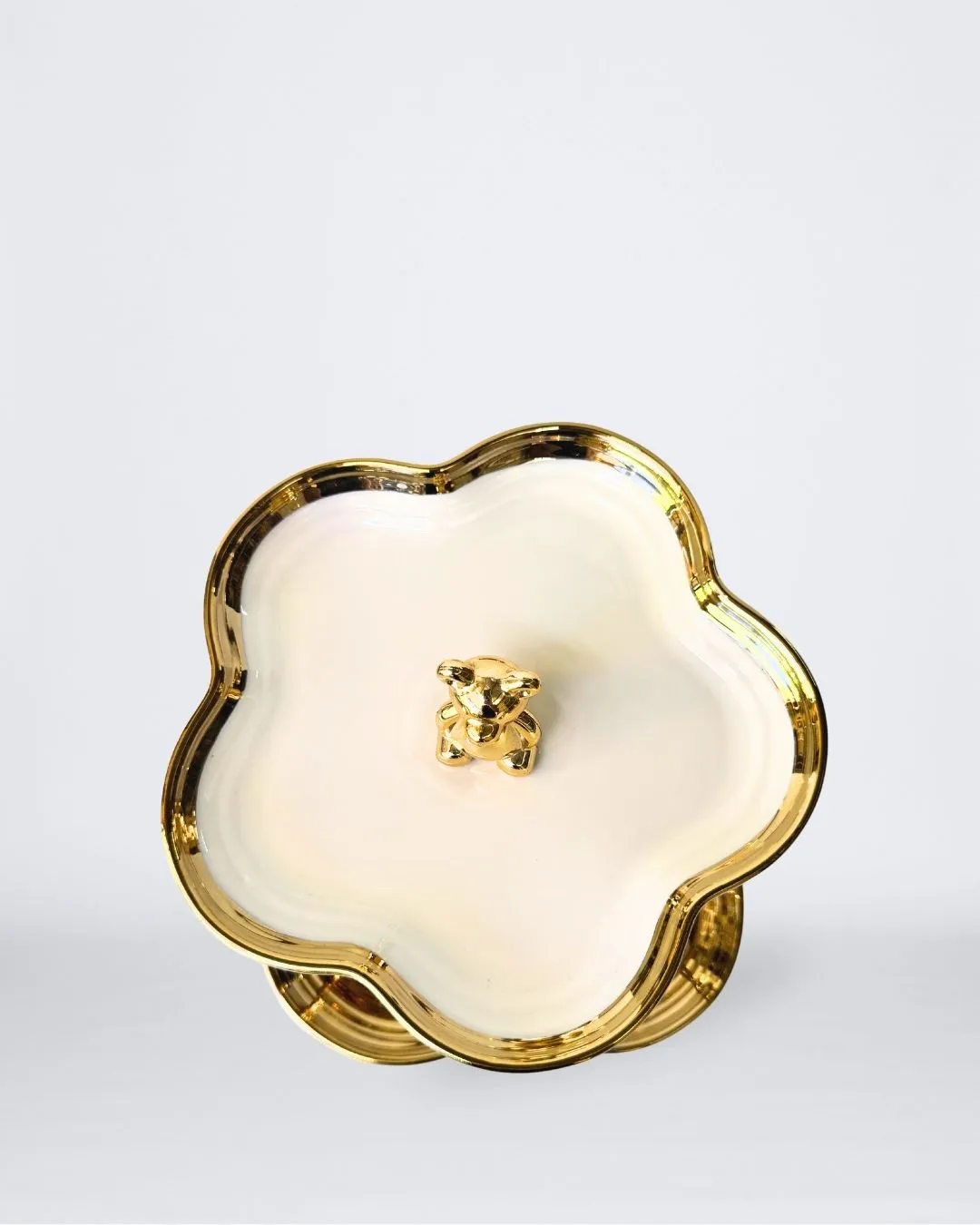 Base para pastel cerámica color blanco con oro